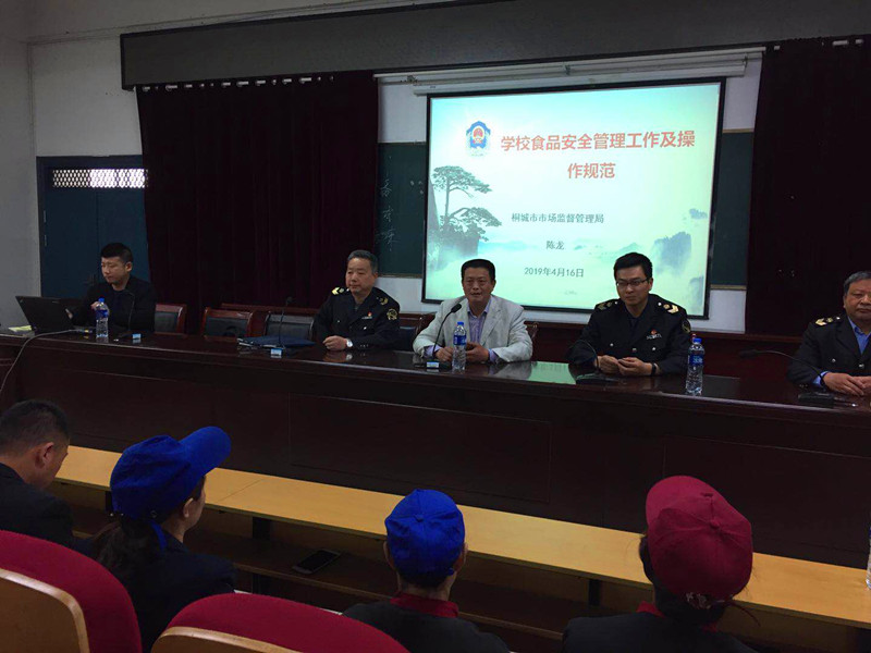 416經學校邀請,桐城市食品藥品監督管理局食品安全工作指導員陳龍,桐城市市場監督管理局文昌所四位同誌,在報告廳為我校開展了學校食品安全管理工作及操作規範培訓。