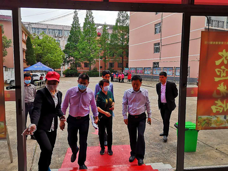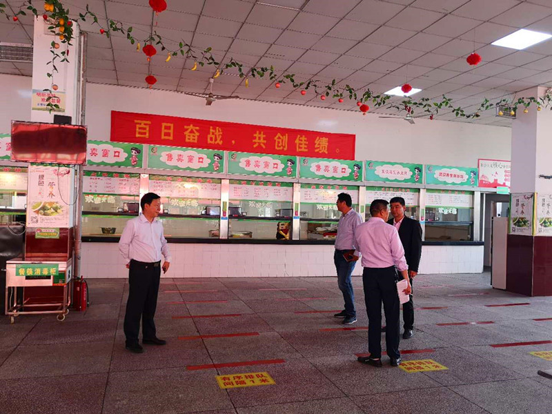 510日下午,根據學校開學方案要求和校園防疫工作需要,總務處在食堂組織開學前供餐模擬演練,校黨委委員、副校長吳登明親臨食堂,檢查指導工作。