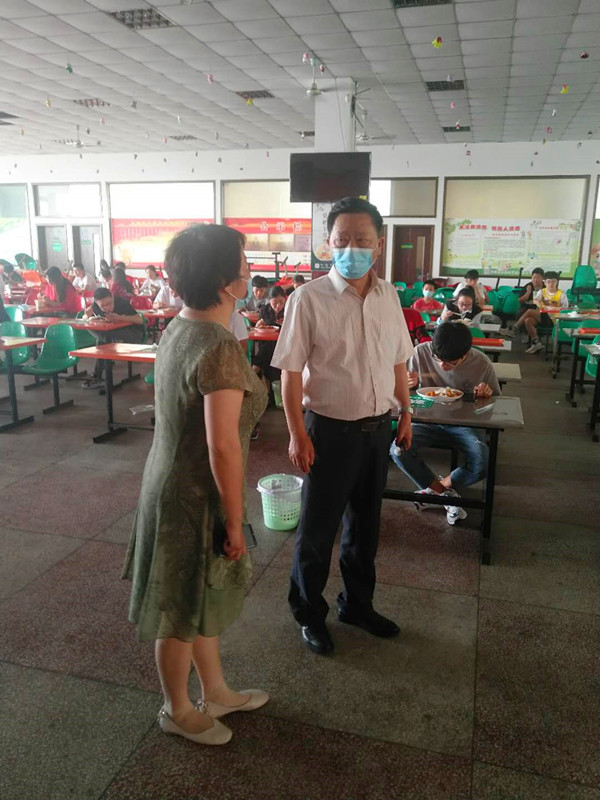 518日,隨著五年製初專學生順利返校,至此,我校疫情防控期間學生返校工作圓滿完成。大批學生返校,隨之而來的餐飲供應、洗浴服務等後勤保障工作壓力陡增,為進一步強化疫情防控,督促指導後勤搞好服務,校黨委委員、副校長吳登明於521日的中午、傍晚深入食堂、浴室、超市進行調研、檢查、指導。