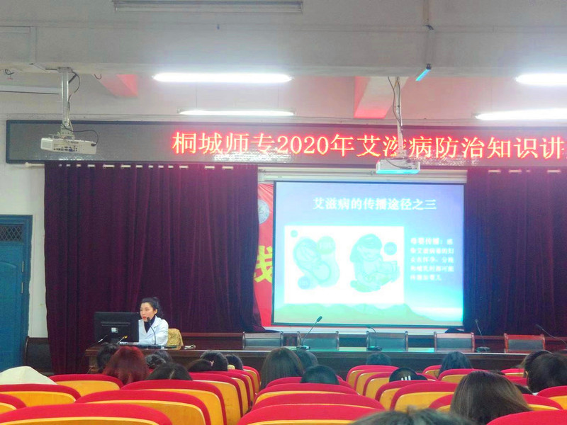 一是開展防艾專題講座:2020年11月30日晚,校醫方莉在以智樓報告廳開展了“攜手防疫抗艾,共擔健康責任”專題講座。講座中,方校醫利用圖片、案例及患病數據等資料,對艾滋病病理知識與危害、傳播方式、預防措施等作了詳細講解,圖文並茂,很好地激發了聽講學生的興趣,增進了學生對防艾知識的了解。