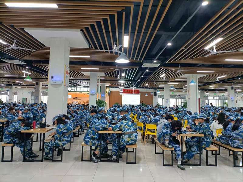 軍訓學生在新校區食堂集體就餐