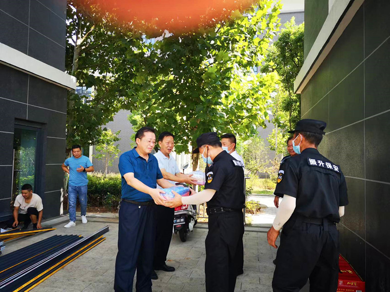 8月23日上午,正值高溫酷暑,學校黨委書記王子龍先後來到校大門口安保室、校園綠化現場、操場周邊護欄施工場地、學生公寓維修現場等走訪慰問暑期堅守在崗位上的一線後勤保障人員,並送上防暑降溫慰問品。黨委委員、副校長吳登明陪同慰問,總務處、保衛處等部門負責人參加。