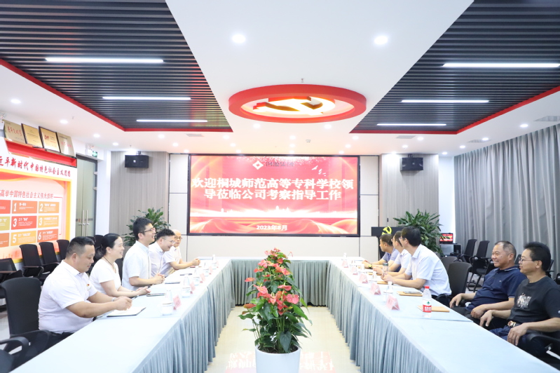 8月18日上午,桐城師範高等專科學校黨委委員、副校長王宏偉,總務處處長高先軍、國資處處長王煥庭等一行前往安徽創源集團考察交流。安徽創源集團常務副總經理童浩及各職能中心負責人熱情接待了王宏偉一行。