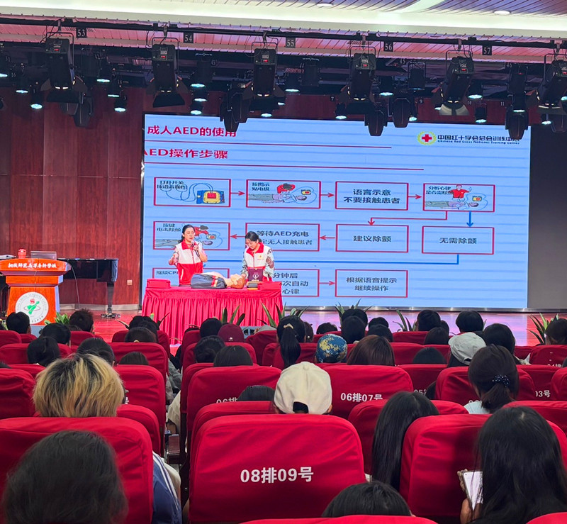 為普及應急救護知識,提升新生應對突發事件與意外傷害的自救互救能力,築牢校園安全防線,我校於923日至24日在校音樂廳成功舉辦第三期救護員培訓班。來自全校各係的500餘名2025級新生參與為期兩天的係統培訓,並順利通過考核。