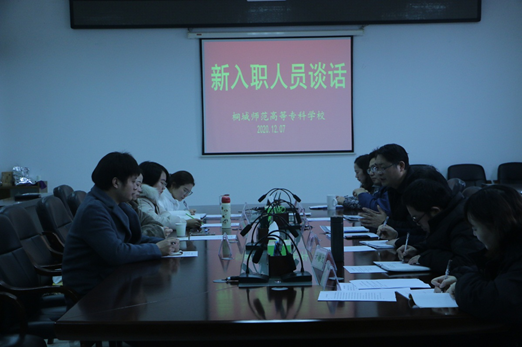 2020年12月7日上午在惜抱樓會議室,學校召開了2020年新入職青年教師談話,校黨委委員、組織人事處處長王宏偉、學生工作處、監察審計處以及相關招聘部門負責人和青年教師參加了會議,會議由組織人事處程小娟主持。